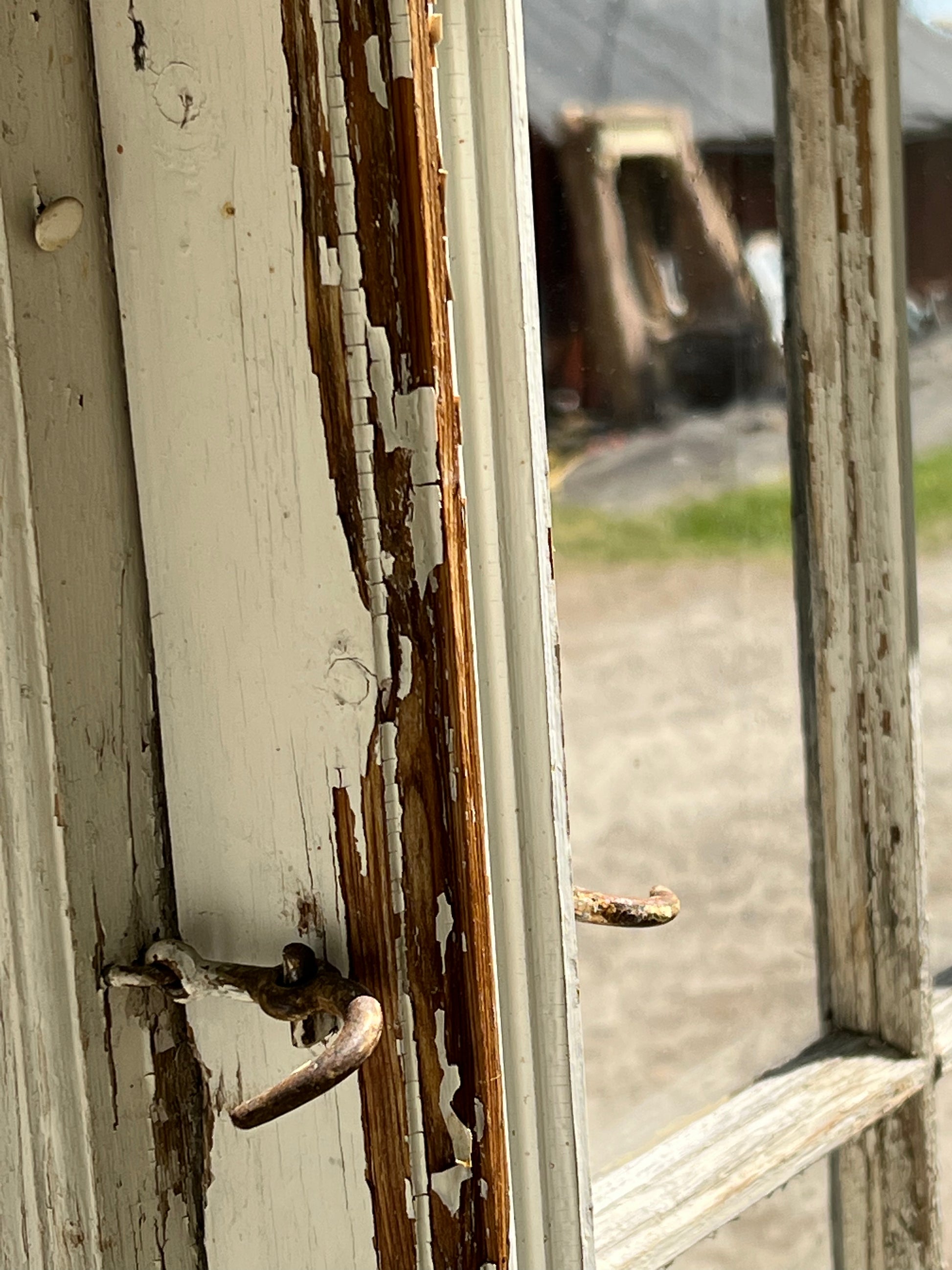 Ett fönster med en skada på en båge. (Se sista bilden)