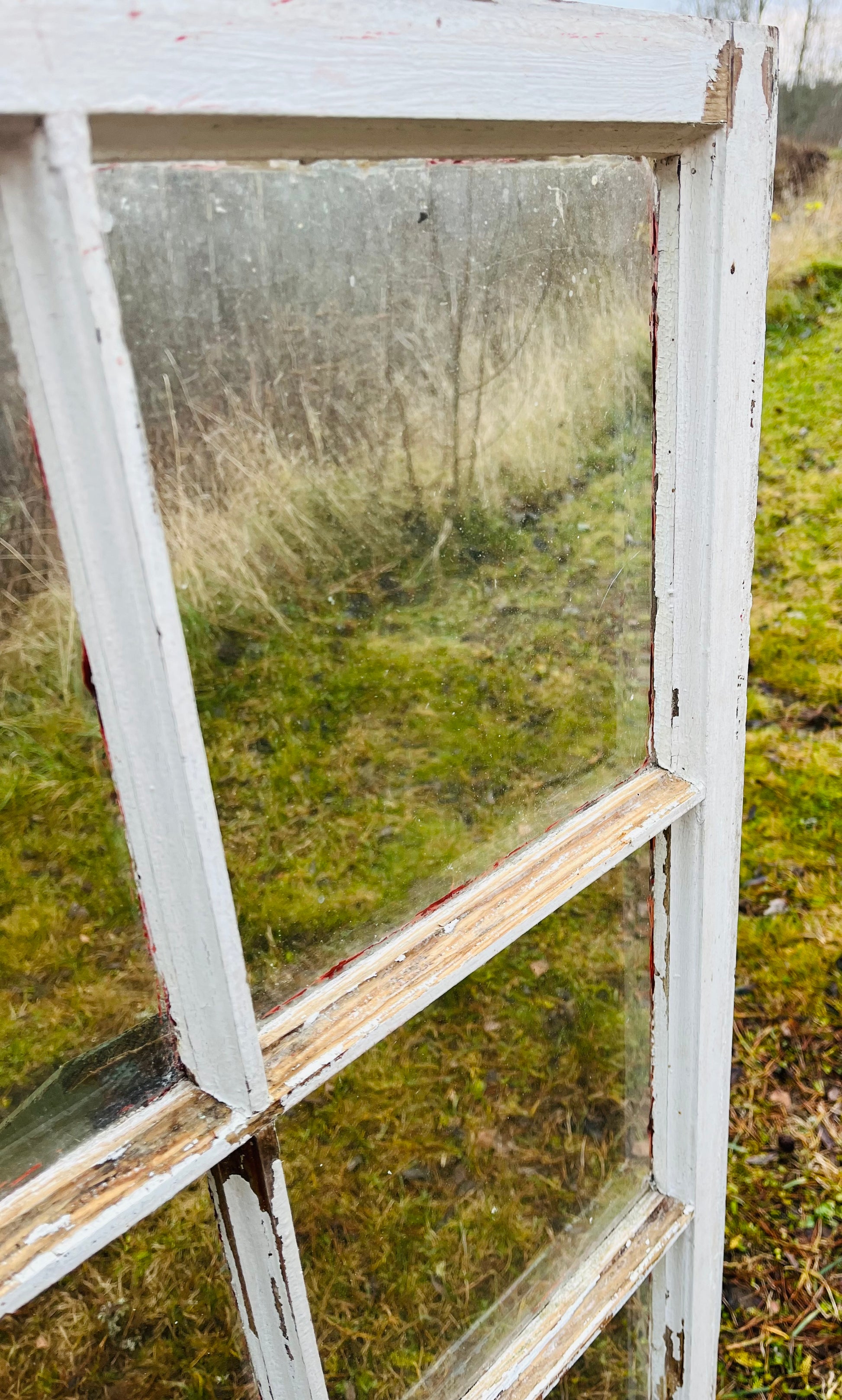 Fönsterbågar med munblåst glas. Där glas är skadat eller fattas ingår tillskuret munblåst glas. Priset avser alla sex bågarna.